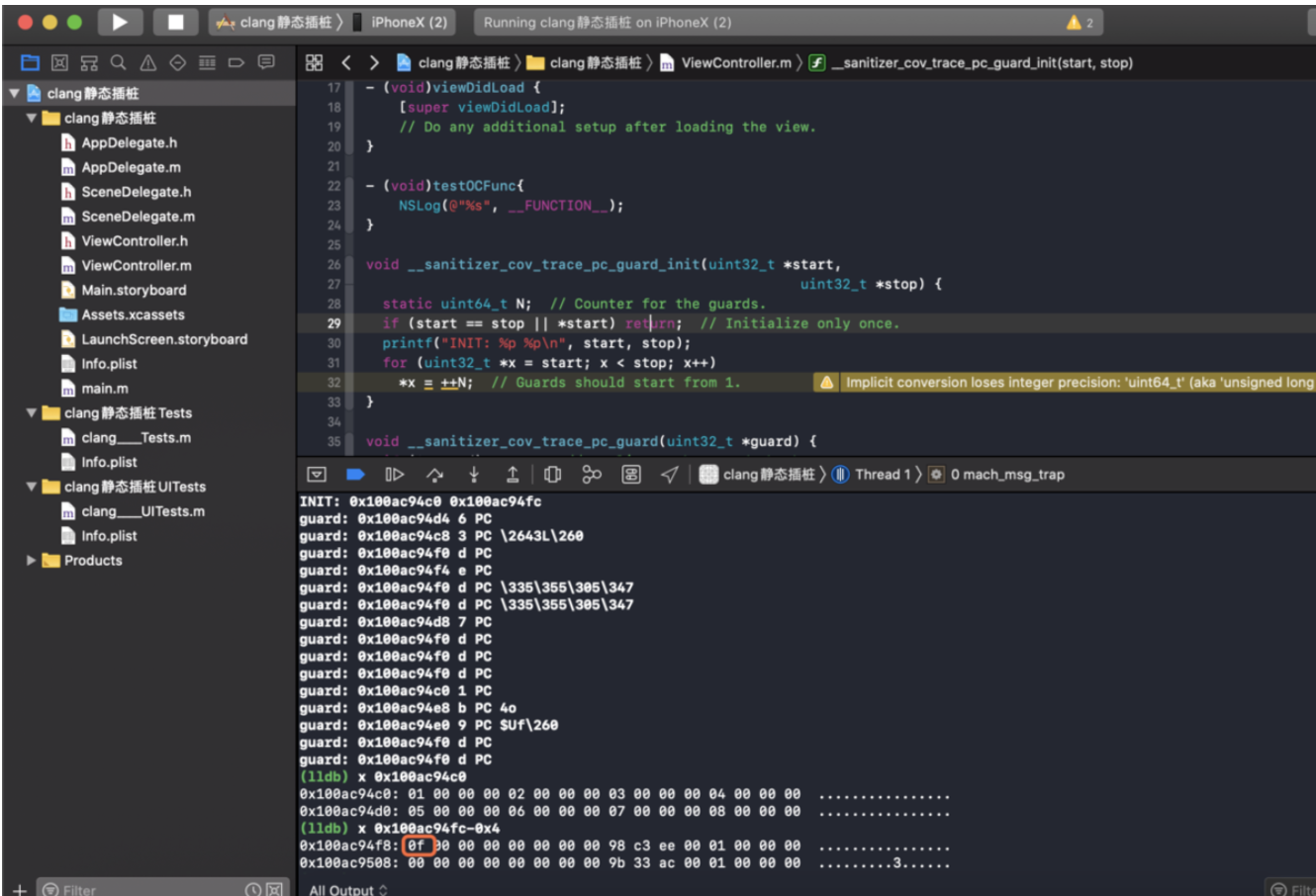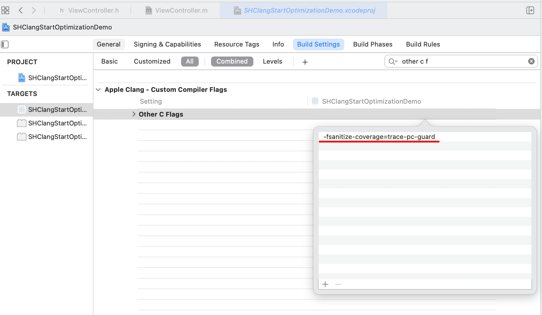 Other C Flags中添加-fsanitize-coverage=trace-pc-guard(trace-pc-guard:跟踪pc保护) - 添加 hook 代码