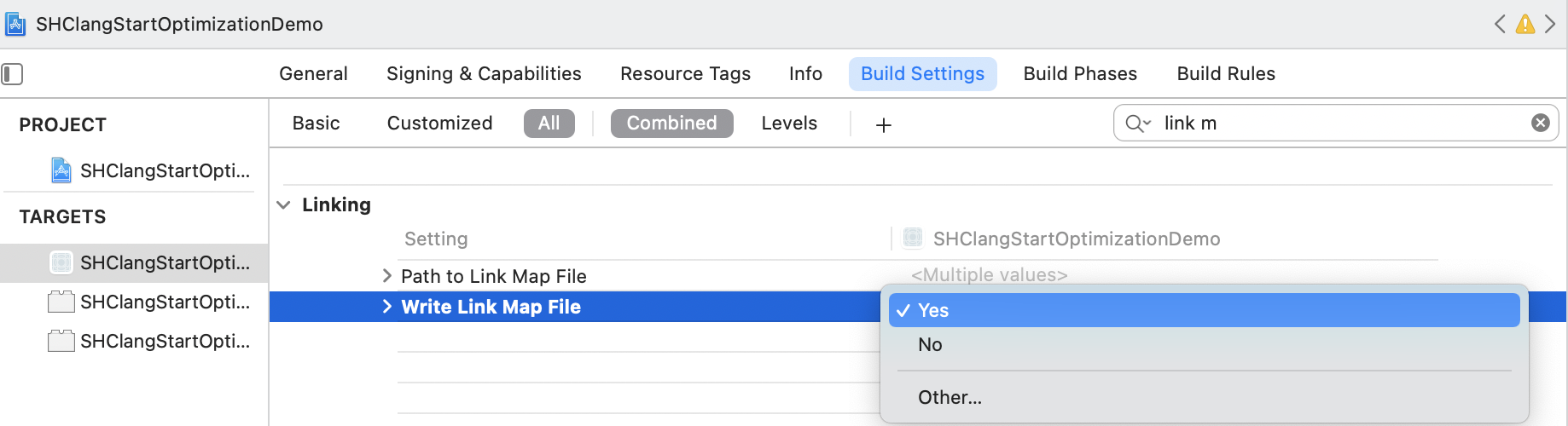 Link Map查看工程的符号顺序。 Link Map 是编译期间产生的产物,记录了二进制文件的布局,通过设置 Write Link Map File 来设置输出与否。 -