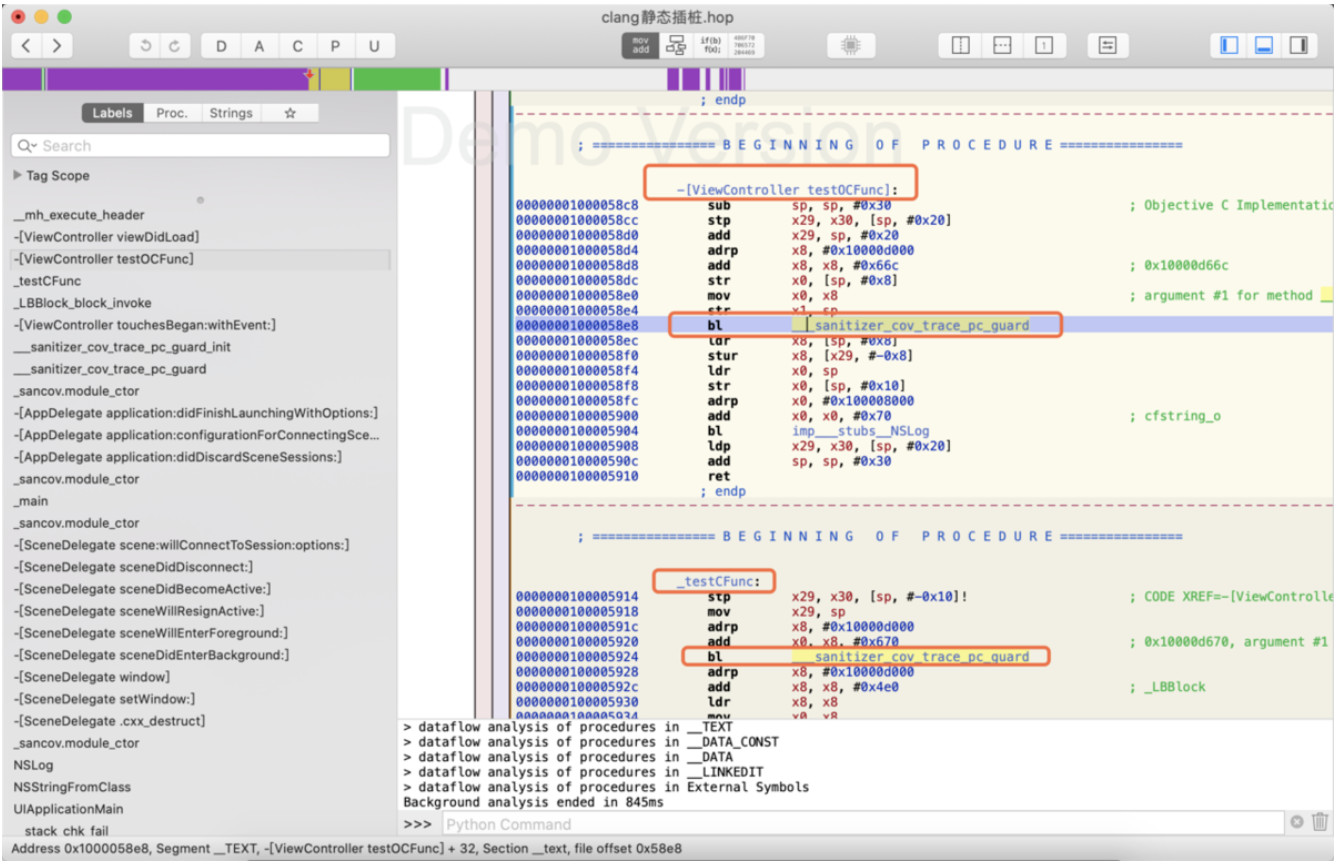 hook objc_MsgSend( 只能拿到oc以及swift加上@objc dynamic修饰后的方法 ) . 2.静态扫描macho特定段和节里面所存储的符号以及函数数据 . (静态扫描 , 主要用来获取load方法 ,c++构造) 3.clang插桩( 完美版本 , 完全拿到swift,oc,c,block全部函数 )
