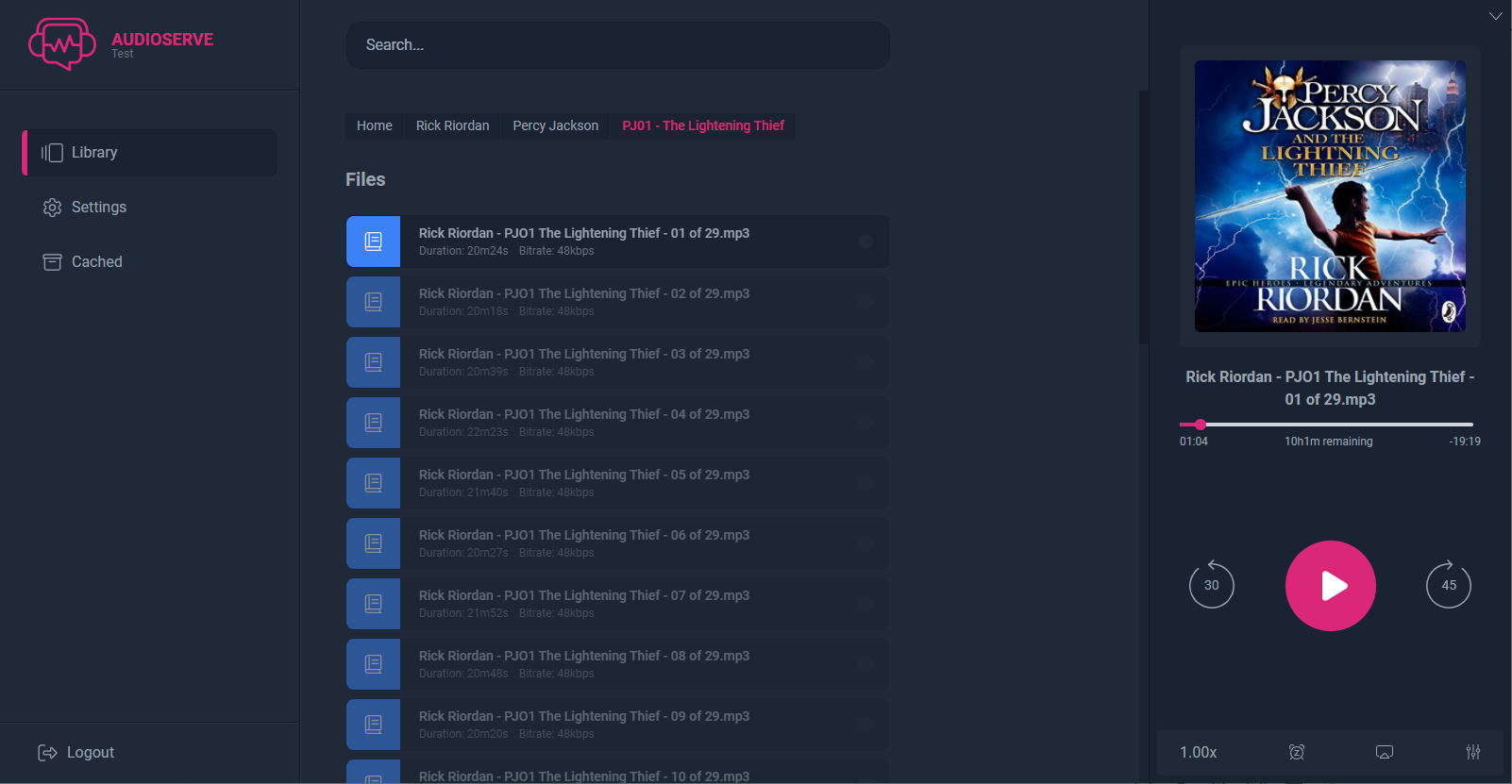 Audioserve UI - Light mode Audioserve UI - Dark mode
