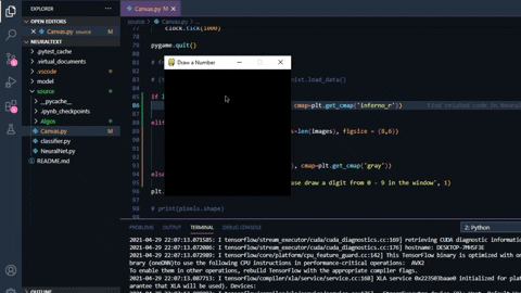 An application that recognizes digits 0 - 9. The neural network was created using the Tensorflow module and trained on the MNIST dataset. Using the pygame module, this application allows users to draw a digit on a canvas the network makes a prediction.
