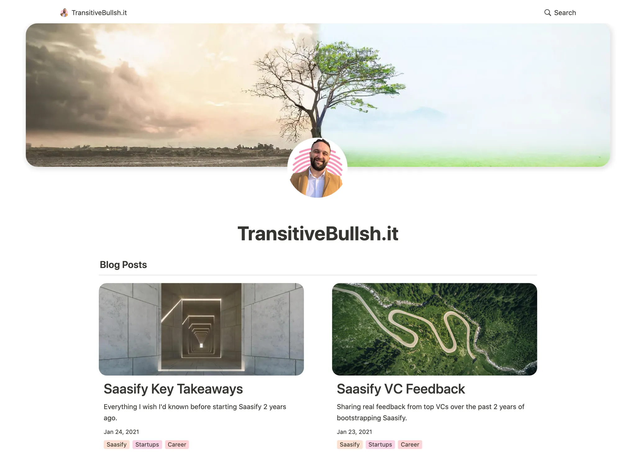 This repo is what I use to power my personal blog and portfolio site transitivebullsh.it.