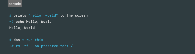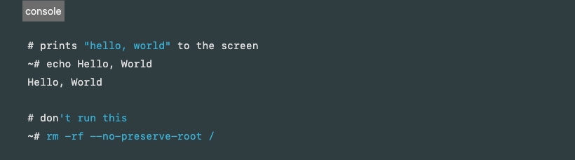 consoleやshell-sessionなどの Console を利用するとき、うまくハイライトされないようです。Qiita では Rouge を使っているようなので公式ページを参照しました。公式ページではハイライトが確認できるため、Qiita 側の問題のように思います。