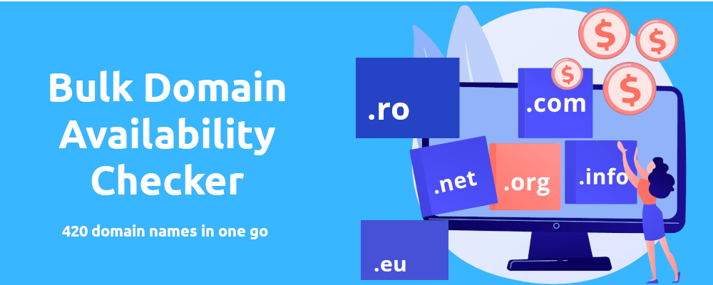 - Bulk check domain availability: Easily check the availability of up to 420 web domains (70 keywords with 6 separate TLDs each) in a single request.
